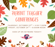 To schedule conferences, we ask that you use Skyward Family Access. Conference sign up will open at noon on Monday, October 6th and close at 4:00 PM on Tuesday, October 21st. Conferences will be held in-person, . . .